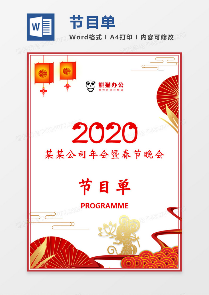 本作品为新年红色灯笼喜庆春节公司年会节目单, 编号:016q706mo9, 格式为 , 大小3 MB, 本作品下载后,先解压,解压之后用推荐软件 () 打开, 然后进行编辑功能。