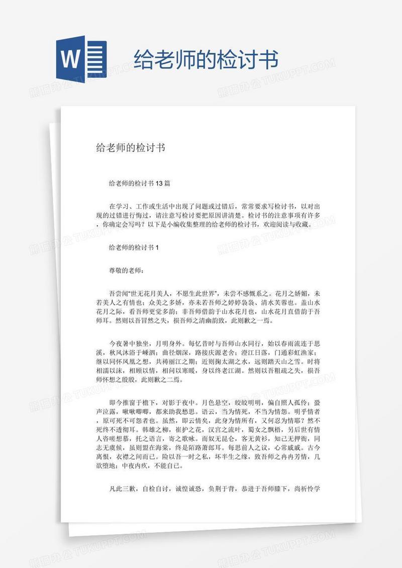 本作品为给老师的检讨书, 编号:016q728rw9, 格式为 docx, 大小1 MB, 本作品下载后,先解压,解压之后用推荐软件 Word(2010) 打开, 然后进行编辑功能。