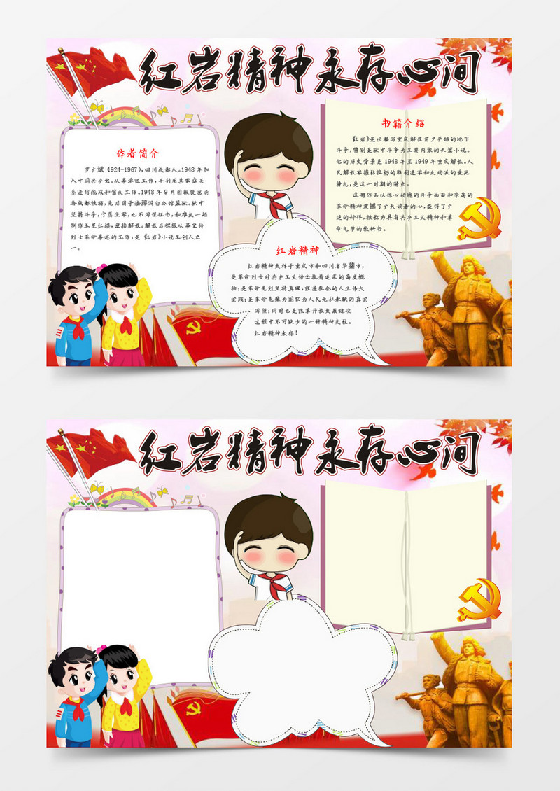 本作品为传承红岩精神阅读小报手抄报word模板, 编号:016q7p8me9, 格式为 doc, 大小2 MB, 本作品下载后,先解压,解压之后用推荐软件 Word(2010) 打开, 然后进行编辑功能。