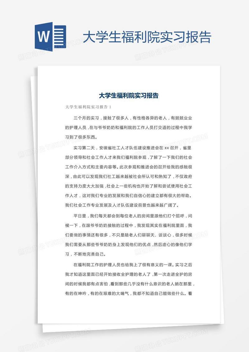 本作品为大学生福利院实习报告, 编号:016qo6b3r9, 格式为 docx, 大小1 MB, 本作品下载后,先解压,解压之后用推荐软件 Word(2010) 打开, 然后进行编辑功能。