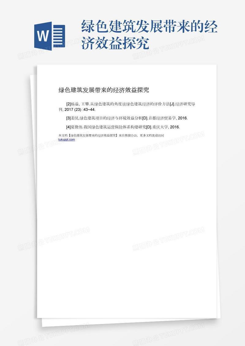 本作品为绿色建筑发展带来的经济效益探究, 编号:016qolvjr9, 格式为 docx, 大小1 MB, 本作品下载后,先解压,解压之后用推荐软件 Word(2010) 打开, 然后进行编辑功能。