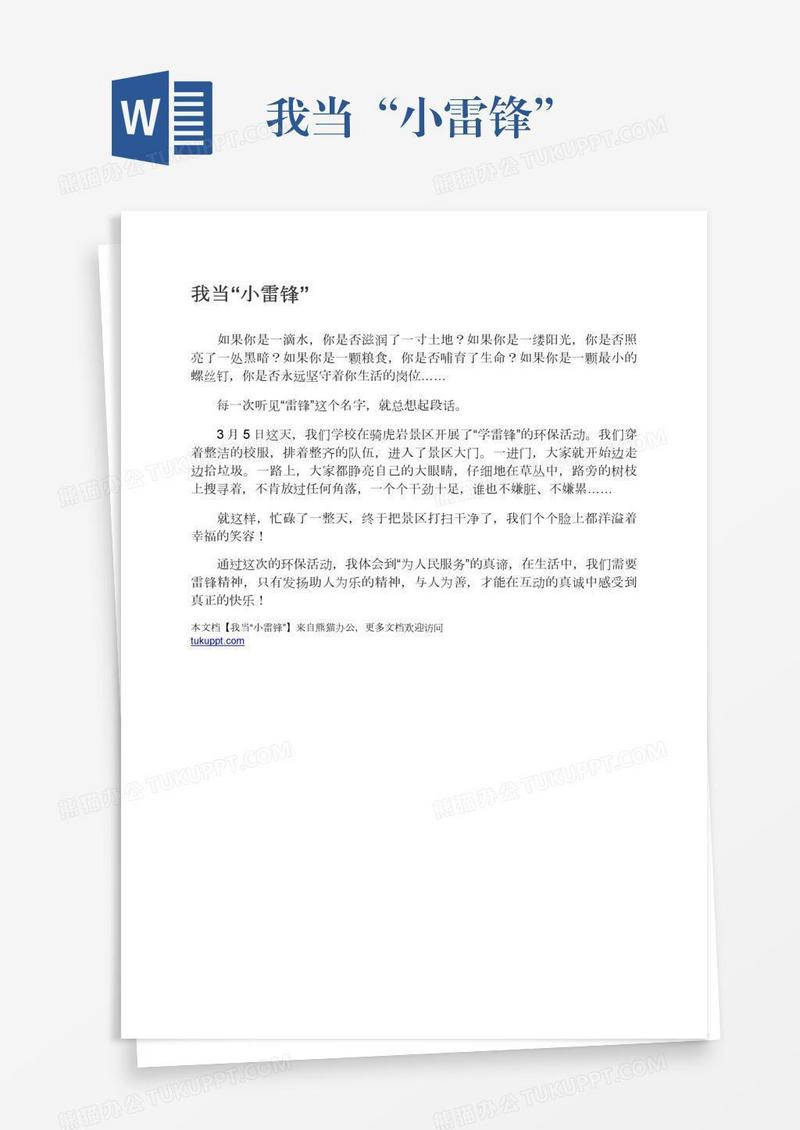 本作品为我当“小雷锋”, 编号:016qon2429, 格式为 docx, 大小1 MB, 本作品下载后,先解压,解压之后用推荐软件 Word(2010) 打开, 然后进行编辑功能。
