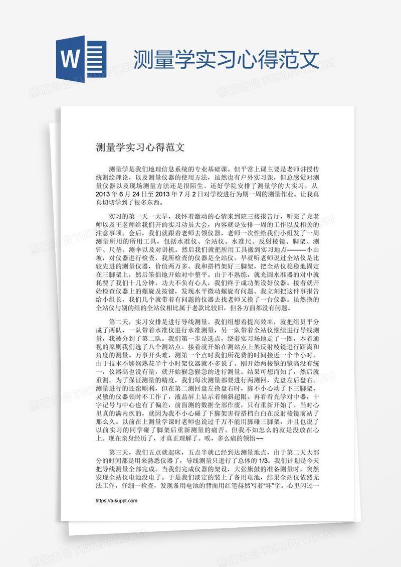 本作品为测量学实习心得范文, 编号:016qoqmvm9, 格式为 docx, 大小1 MB, 本作品下载后,先解压,解压之后用推荐软件 Word(2010) 打开, 然后进行编辑功能。