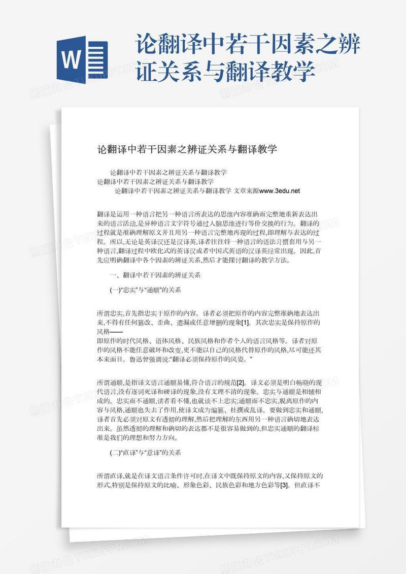 本作品为论翻译中若干因素之辨证关系与翻译教学, 编号:016qy7nr29, 格式为 docx, 大小1 MB, 本作品下载后,先解压,解压之后用推荐软件 Word(2010) 打开, 然后进行编辑功能。