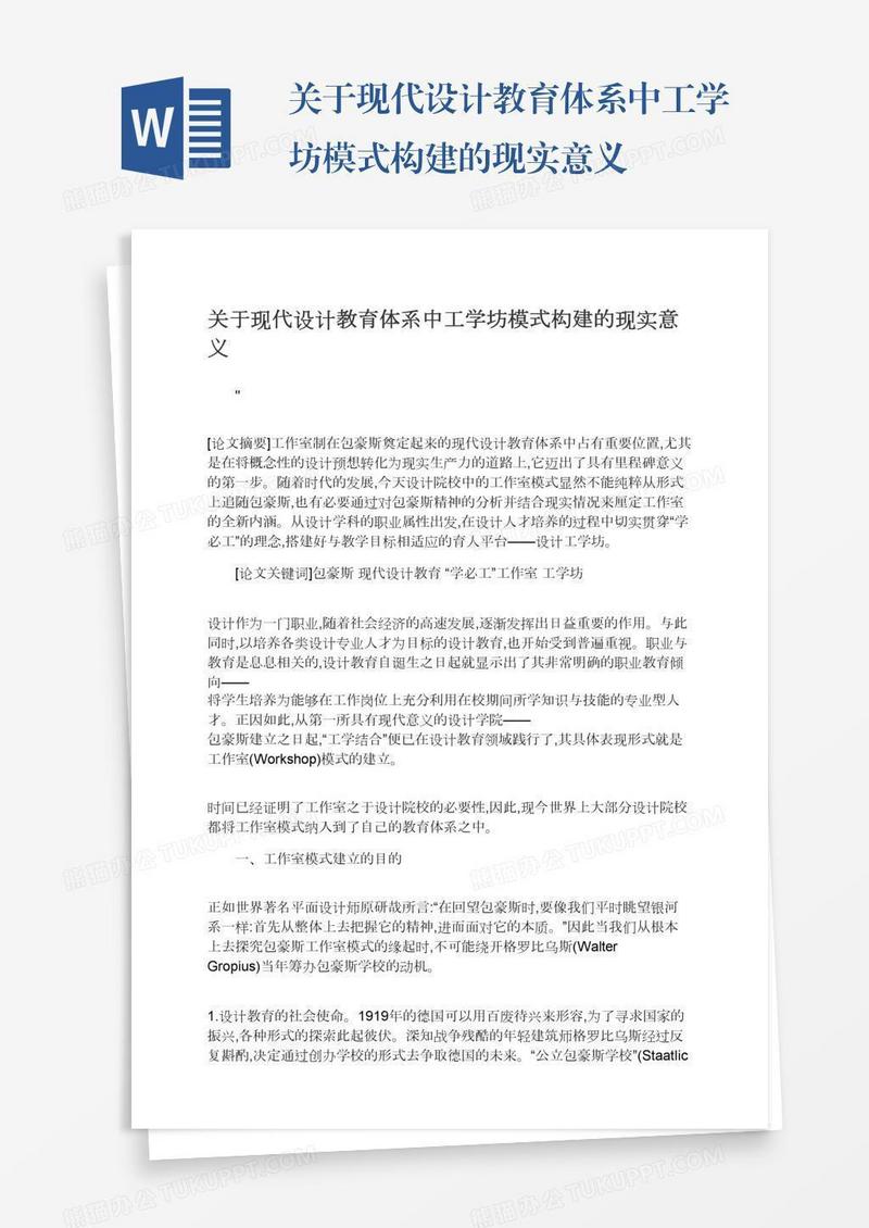 本作品为关于现代设计教育体系中工学坊模式构建的现实意义, 编号:016qyq74w9, 格式为 docx, 大小1 MB, 本作品下载后,先解压,解压之后用推荐软件 Word(2010) 打开, 然后进行编辑功能。