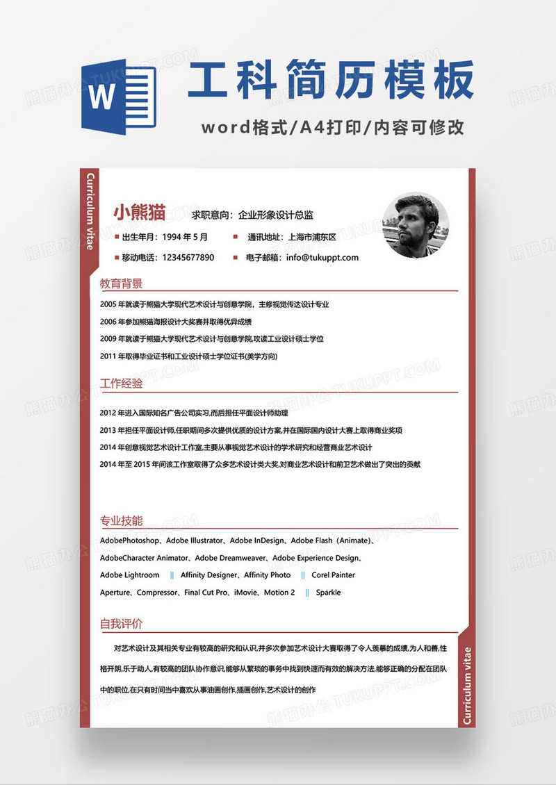 本作品为企业形象设计总监个人求职模板, 编号:016qywgme9, 格式为 docx, 大小8 MB, 本作品下载后,先解压,解压之后用推荐软件 Word(2019) 打开, 然后进行编辑功能。