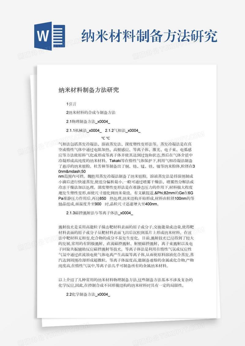 本作品为纳米材料制备方法研究, 编号:016qyymdm9, 格式为 docx, 大小1 MB, 本作品下载后,先解压,解压之后用推荐软件 Word(2010) 打开, 然后进行编辑功能。