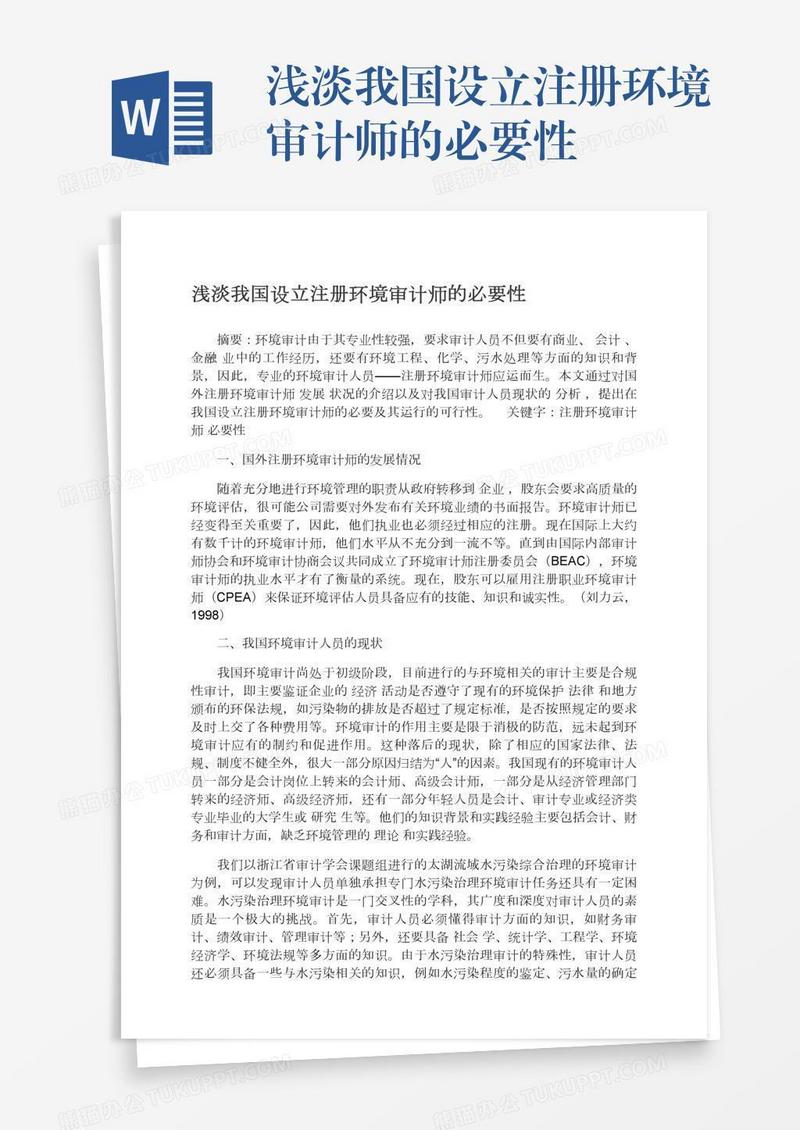 本作品为浅淡我国设立注册环境审计师的必要性, 编号:0ayk302mn9, 格式为 docx, 大小1 MB, 本作品下载后,先解压,解压之后用推荐软件 Word(2010) 打开, 然后进行编辑功能。