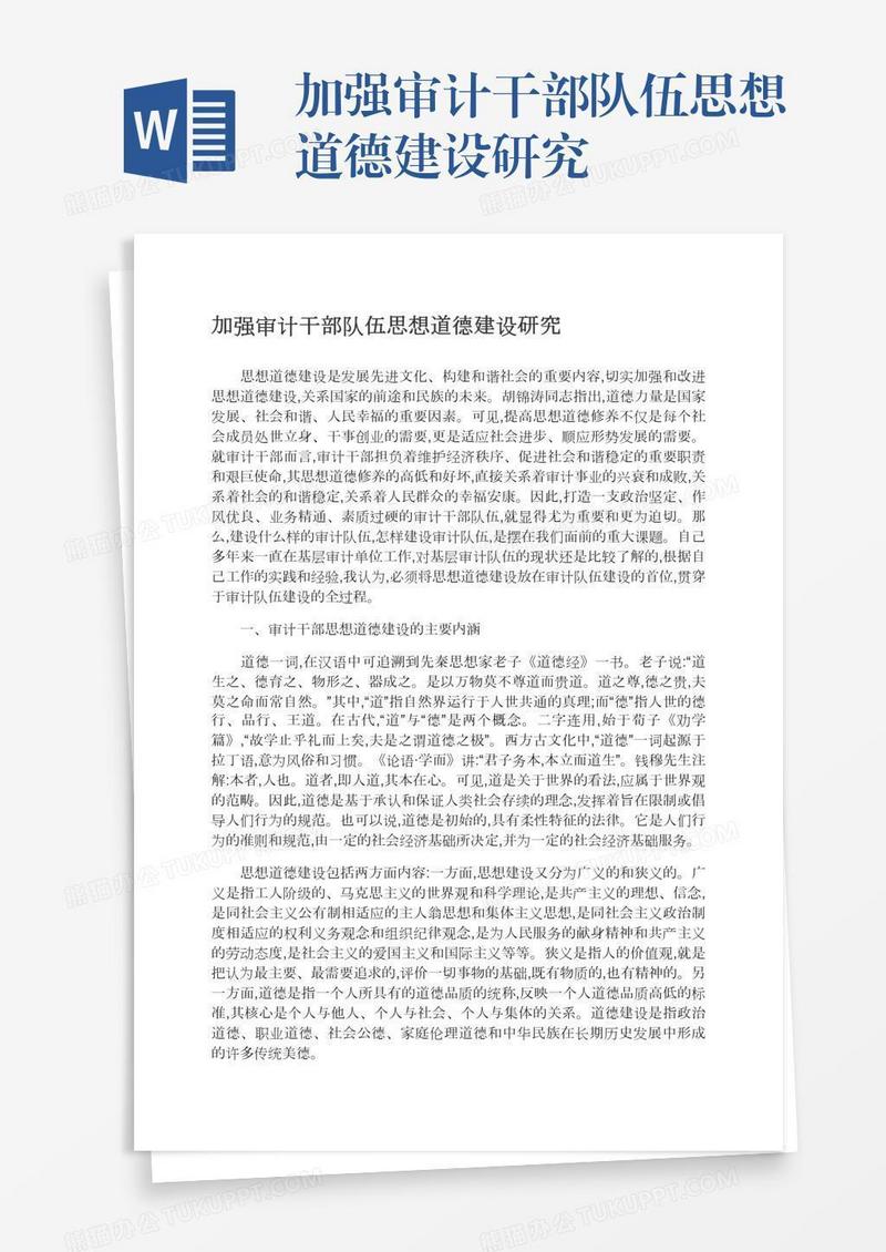 本作品为加强审计干部队伍思想道德建设研究, 编号:0ayk30j5l9, 格式为 docx, 大小1 MB, 本作品下载后,先解压,解压之后用推荐软件 Word(2010) 打开, 然后进行编辑功能。