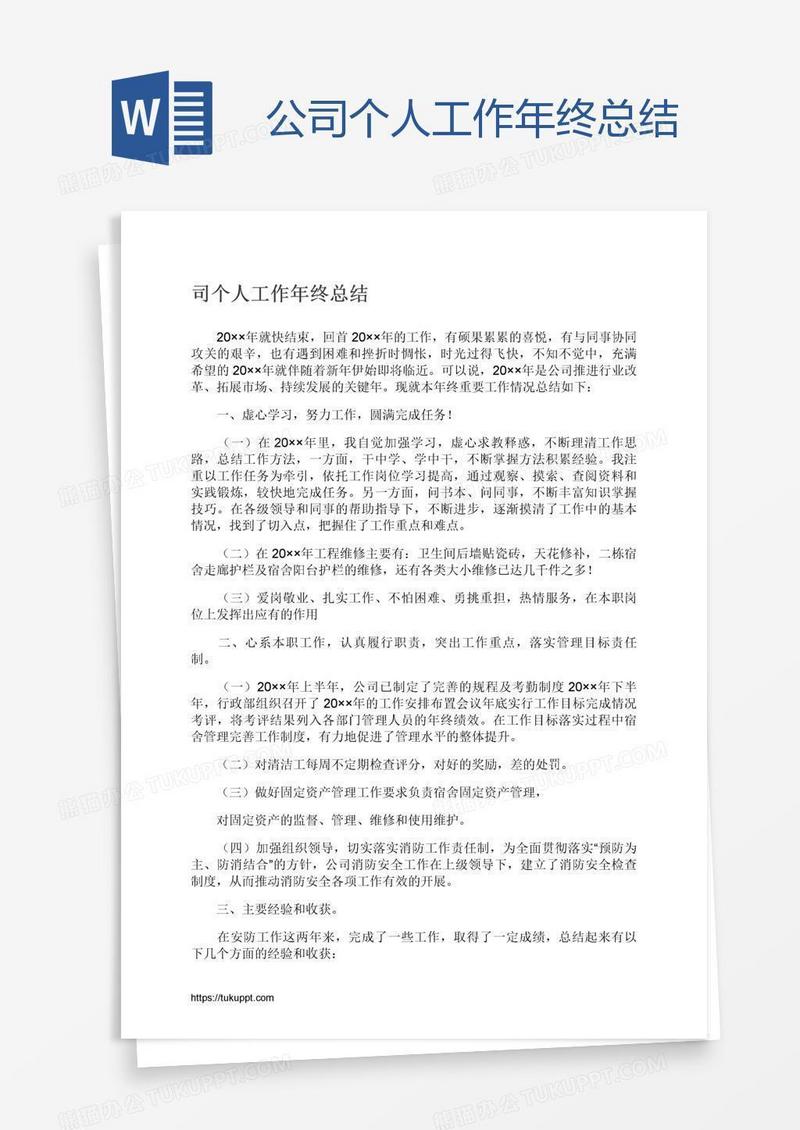 本作品为公司个人工作年终总结, 编号:0ayk33qnl9, 格式为 docx, 大小1 MB, 本作品下载后,先解压,解压之后用推荐软件 Word(2010) 打开, 然后进行编辑功能。