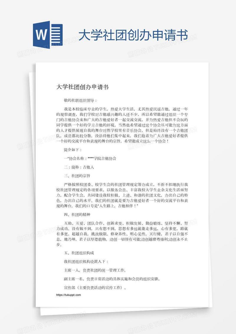 本作品为大学社团创办申请书, 编号:0ayk3d2ql9, 格式为 docx, 大小1 MB, 本作品下载后,先解压,解压之后用推荐软件 Word(2010) 打开, 然后进行编辑功能。