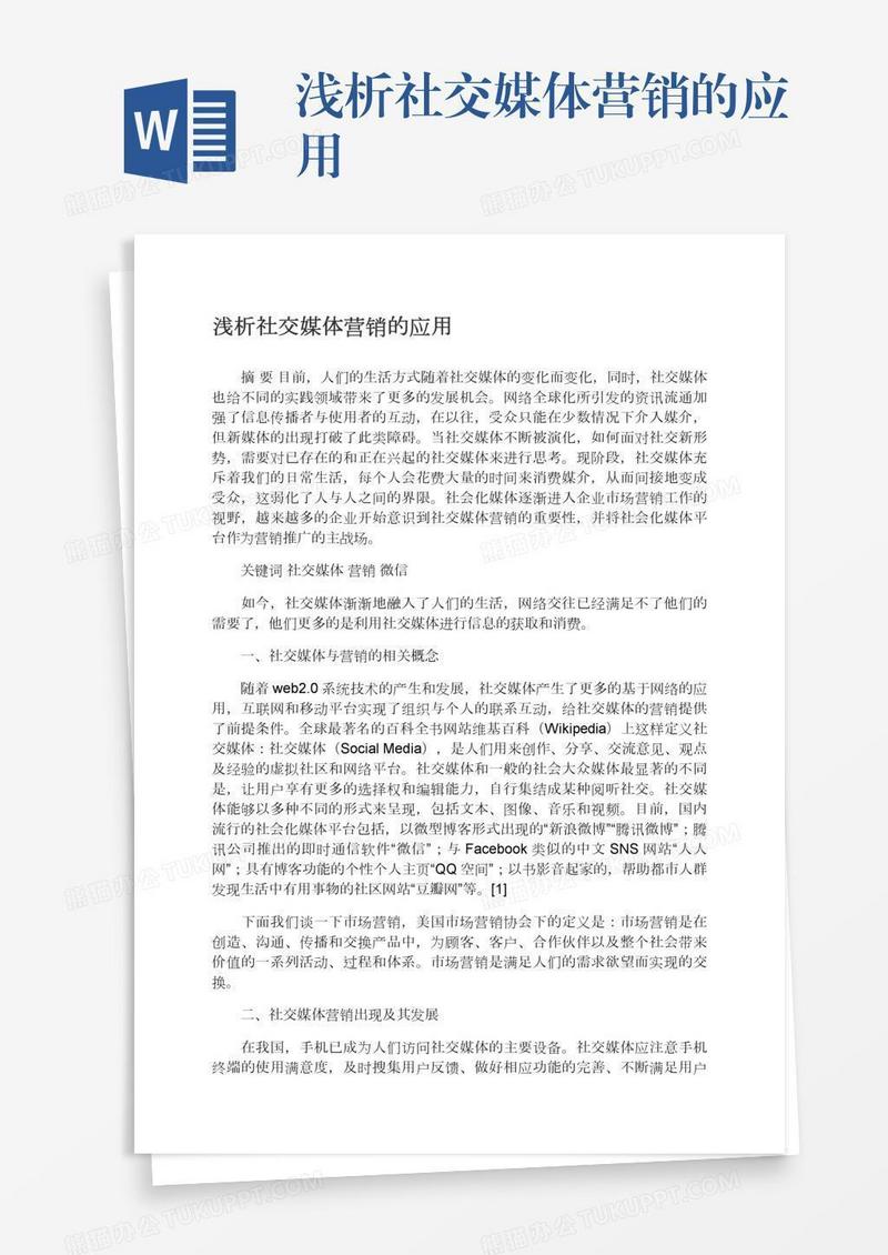本作品为浅析社交媒体营销的应用, 编号:0ayk3mv2n9, 格式为 docx, 大小1 MB, 本作品下载后,先解压,解压之后用推荐软件 Word(2010) 打开, 然后进行编辑功能。