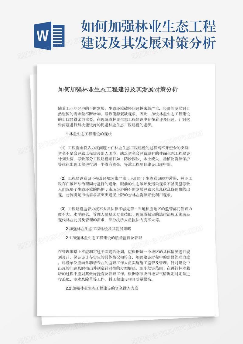 本作品为如何加强林业生态工程建设及其发展对策分析, 编号:0aykn8nnn9, 格式为 docx, 大小1 MB, 本作品下载后,先解压,解压之后用推荐软件 Word(2010) 打开, 然后进行编辑功能。