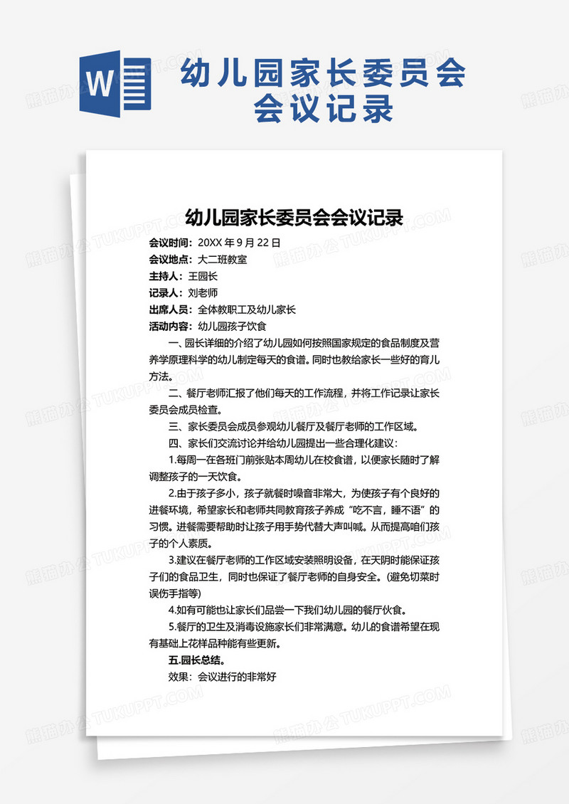幼儿园家长委员会会议记录word模板