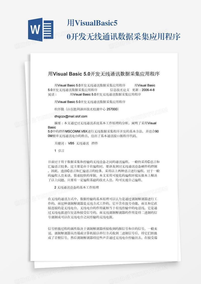 本作品为用VisualBasic5.0开发无线通讯数据采集应用程序, 编号:0ayknkj7n9, 格式为 docx, 大小1 MB, 本作品下载后,先解压,解压之后用推荐软件 Word(2010) 打开, 然后进行编辑功能。