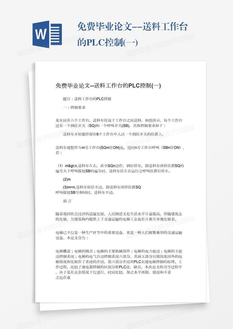 本作品为免费毕业论文--送料工作台的PLC控制(一), 编号:0ayknpjrn9, 格式为 docx, 大小1 MB, 本作品下载后,先解压,解压之后用推荐软件 Word(2010) 打开, 然后进行编辑功能。