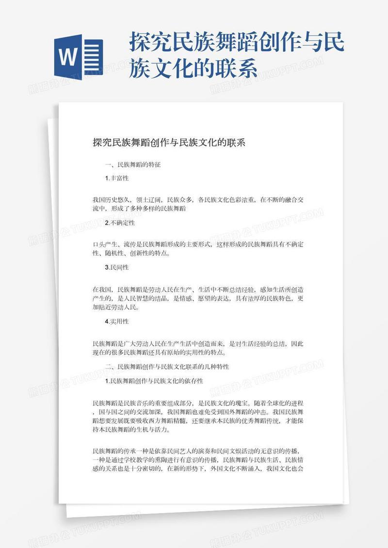 本作品为探究民族舞蹈创作与民族文化的联系, 编号:0ayknv8ek9, 格式为 docx, 大小1 MB, 本作品下载后,先解压,解压之后用推荐软件 Word(2010) 打开, 然后进行编辑功能。