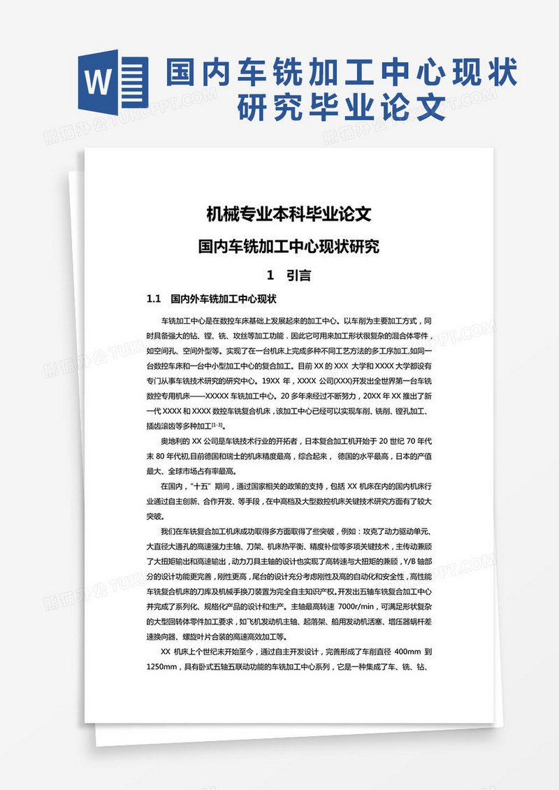 本作品为国内车铣加工中心现状研究毕业论文, 编号:0aykp45en9, 格式为 docx, 大小6 MB, 本作品下载后,先解压,解压之后用推荐软件 Word(2016) 打开, 然后进行编辑功能。