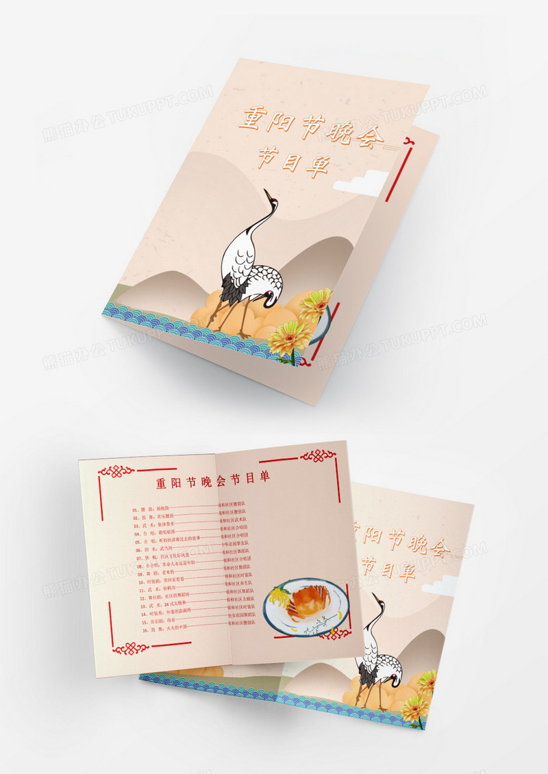 本作品为秋天重阳节节目单word模板, 编号:0aykpdb8l9, 格式为 docx, 大小2 MB, 本作品下载后,先解压,解压之后用推荐软件 Word(2016) 打开, 然后进行编辑功能。