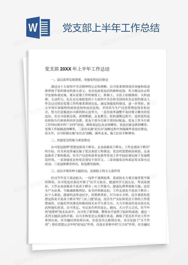 本作品为党支部上半年工作总结, 编号:0aykpq76d9, 格式为 docx, 大小1 MB, 本作品下载后,先解压,解压之后用推荐软件 Word(2010) 打开, 然后进行编辑功能。