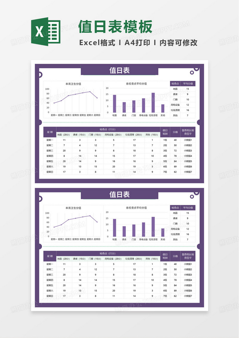 本作品为扁平商务值日表excel模板, 编号:0ayvvw73na, 格式为 xlsx, 大小1 MB, 本作品下载后,先解压,解压之后用推荐软件 Excel(2016) 打开, 然后进行编辑功能。