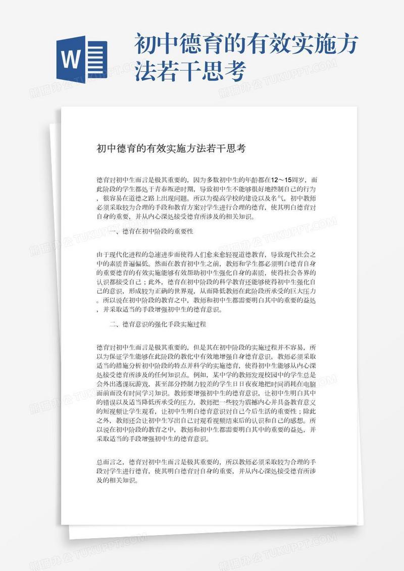 本作品为初中德育的有效实施方法若干思考, 编号:313e3bp7y9, 格式为 docx, 大小1 MB, 本作品下载后,先解压,解压之后用推荐软件 Word(2010) 打开, 然后进行编辑功能。