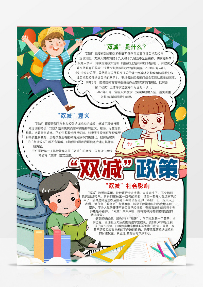 本作品为中小学生双减政策手抄报, 编号:313e3gm4p9, 格式为 wps, 大小6 MB, 本作品下载后,先解压,解压之后用推荐软件 Word(2019) 打开, 然后进行编辑功能。