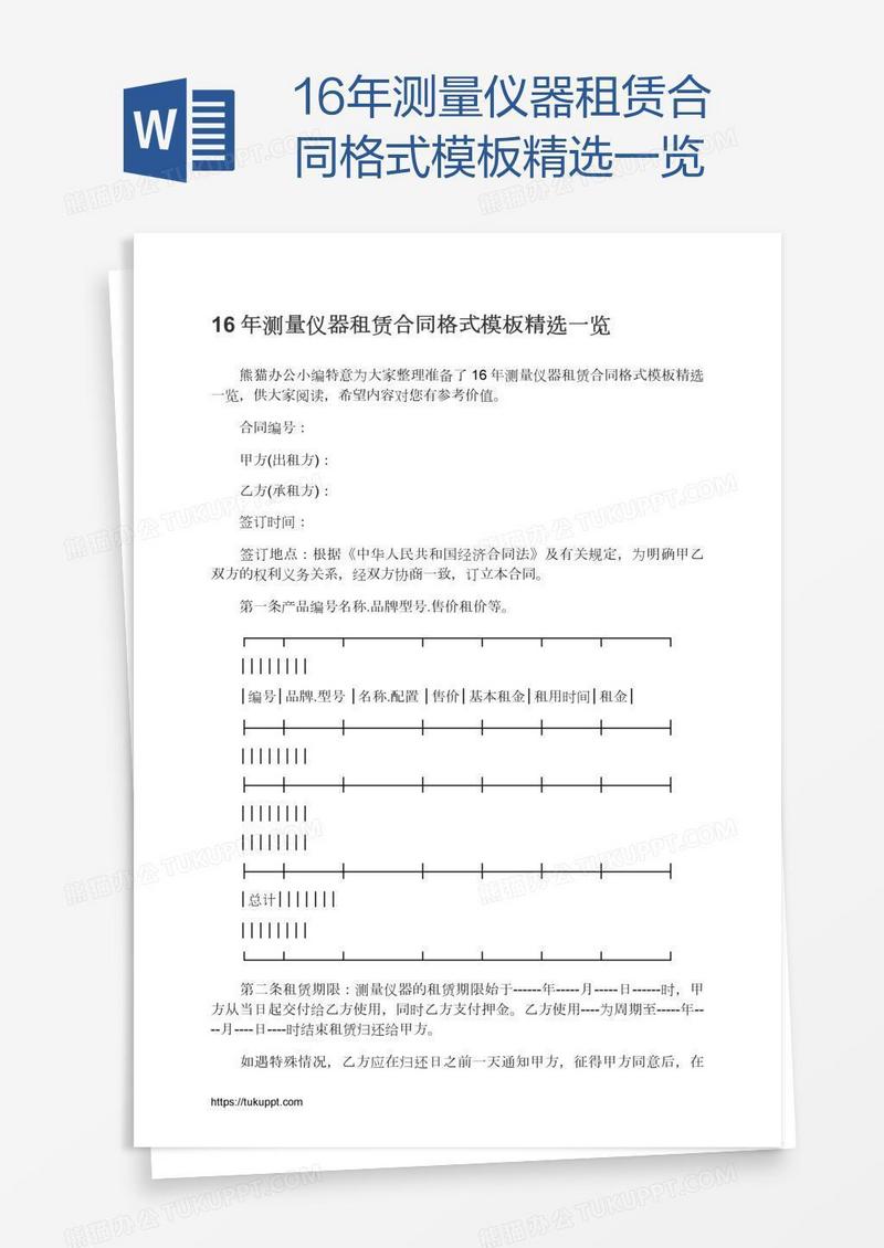 本作品为16年测量仪器租赁合同格式模板精选一览, 编号:313ekgdyg9, 格式为 docx, 大小1 MB, 本作品下载后,先解压,解压之后用推荐软件 Word(2010) 打开, 然后进行编辑功能。