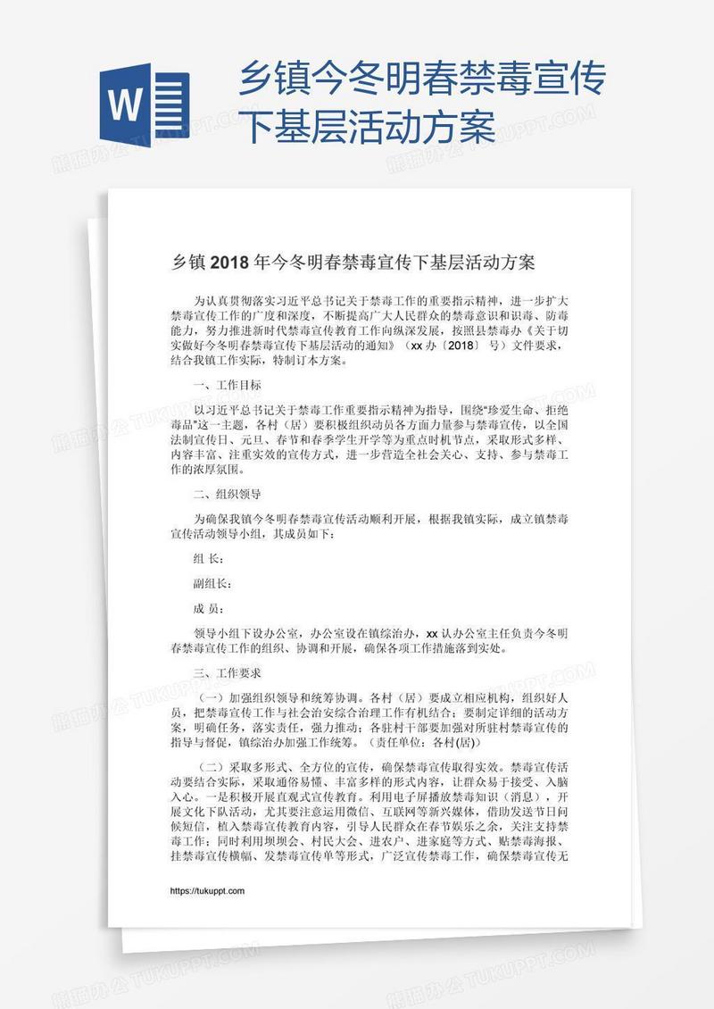 本作品为乡镇今冬明春禁毒宣传下基层活动方案, 编号:313ekm7bg9, 格式为 docx, 大小1 MB, 本作品下载后,先解压,解压之后用推荐软件 Word(2010) 打开, 然后进行编辑功能。