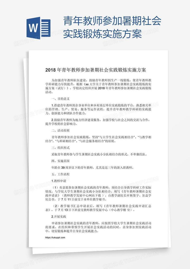 本作品为青年教师参加暑期社会实践锻炼实施方案, 编号:313ekmrdr9, 格式为 docx, 大小1 MB, 本作品下载后,先解压,解压之后用推荐软件 Word(2010) 打开, 然后进行编辑功能。