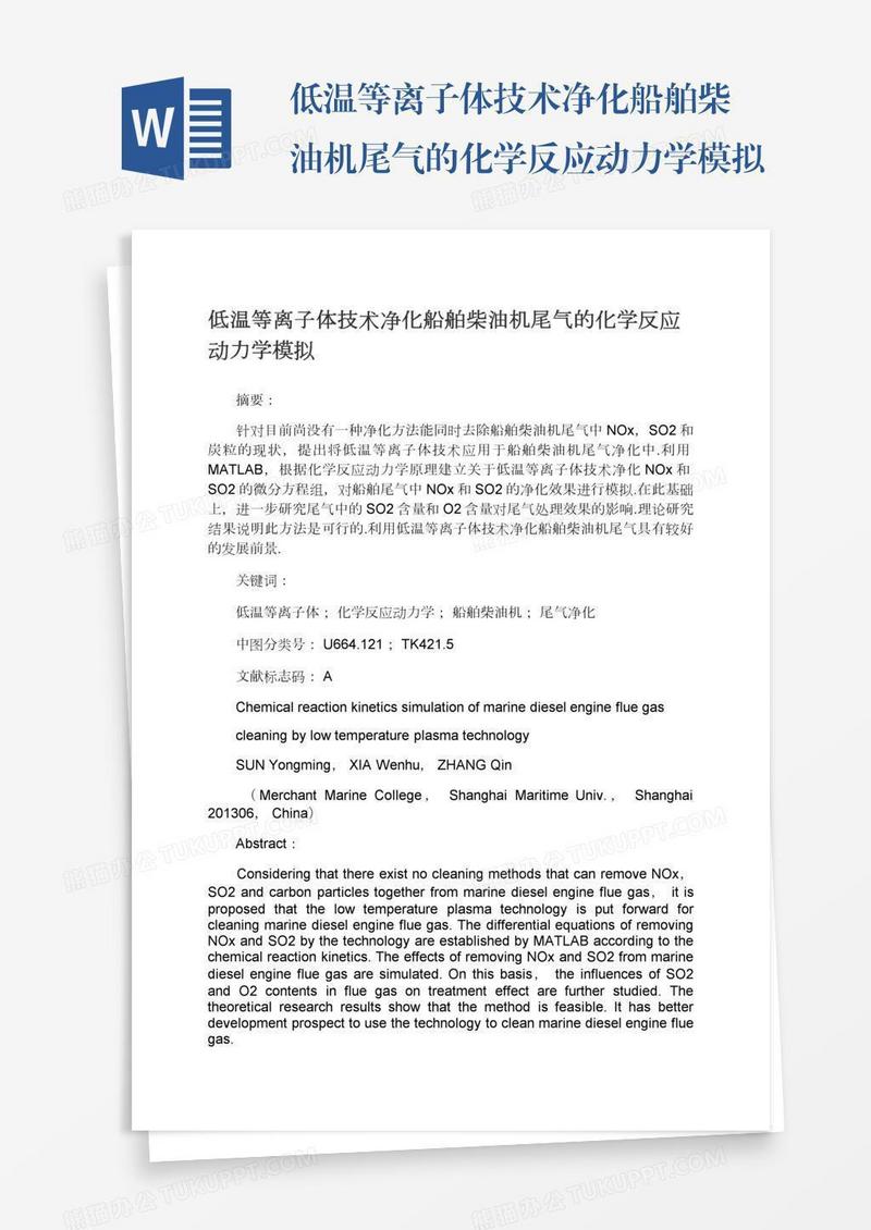 本作品为低温等离子体技术净化船舶柴油机尾气的化学反应动力学模拟, 编号:313ekwybg9, 格式为 docx, 大小1 MB, 本作品下载后,先解压,解压之后用推荐软件 Word(2010) 打开, 然后进行编辑功能。