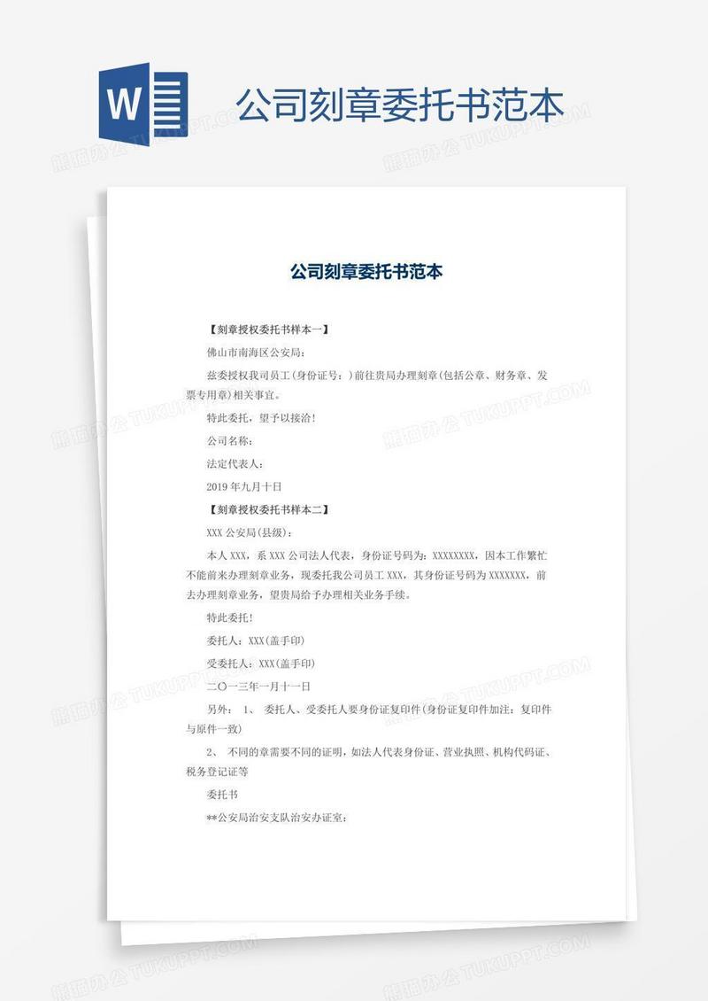 本作品为公司刻章委托书范本, 编号:417p36g701, 格式为 docx, 大小1 MB, 本作品下载后,先解压,解压之后用推荐软件 Word(2010) 打开, 然后进行编辑功能。