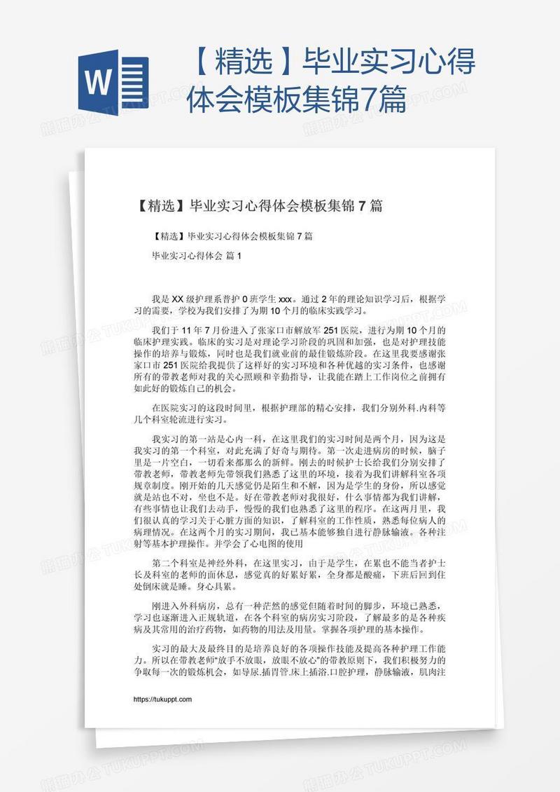 本作品为【精选】毕业实习心得体会模板集锦7篇, 编号:417p3kygk1, 格式为 docx, 大小1 MB, 本作品下载后,先解压,解压之后用推荐软件 Word(2010) 打开, 然后进行编辑功能。