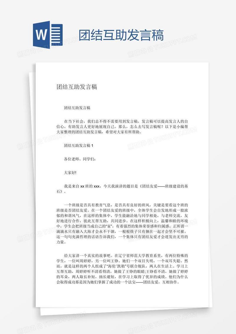 团结互助发言稿