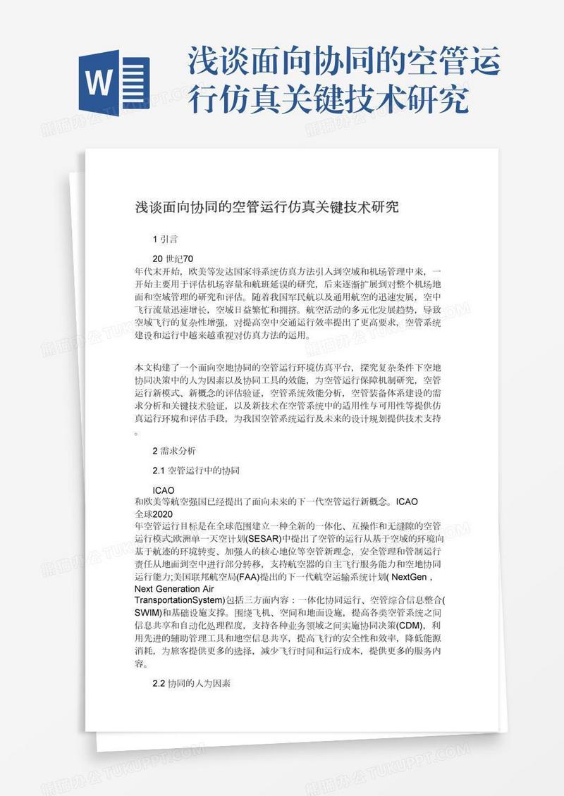 本作品为浅谈面向协同的空管运行仿真关键技术研究, 编号:417p43lr61, 格式为 docx, 大小1 MB, 本作品下载后,先解压,解压之后用推荐软件 Word(2010) 打开, 然后进行编辑功能。
