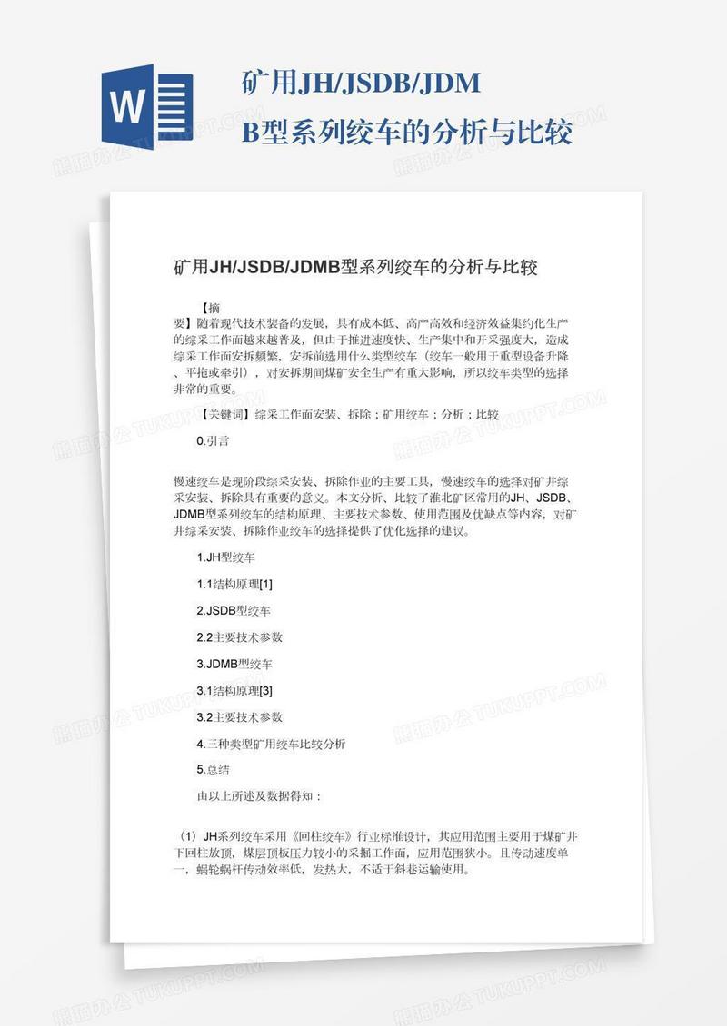 本作品为矿用JH/JSDB/JDMB型系列绞车的分析与比较, 编号:417p445q21, 格式为 docx, 大小1 MB, 本作品下载后,先解压,解压之后用推荐软件 Word(2010) 打开, 然后进行编辑功能。