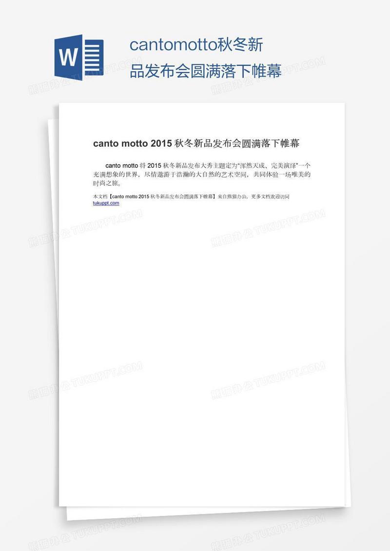 本作品为cantomotto秋冬新品发布会圆满落下帷幕, 编号:417p4jnr01, 格式为 docx, 大小1 MB, 本作品下载后,先解压,解压之后用推荐软件 Word(2010) 打开, 然后进行编辑功能。