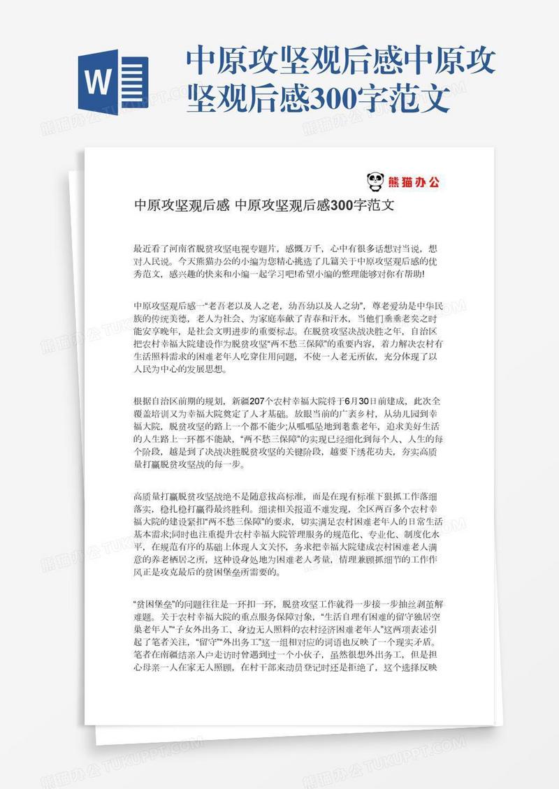 本作品为中原攻坚观后感中原攻坚观后感300字范文, 编号:417py8ee01, 格式为 docx, 大小1 MB, 本作品下载后,先解压,解压之后用推荐软件 Word(2010) 打开, 然后进行编辑功能。