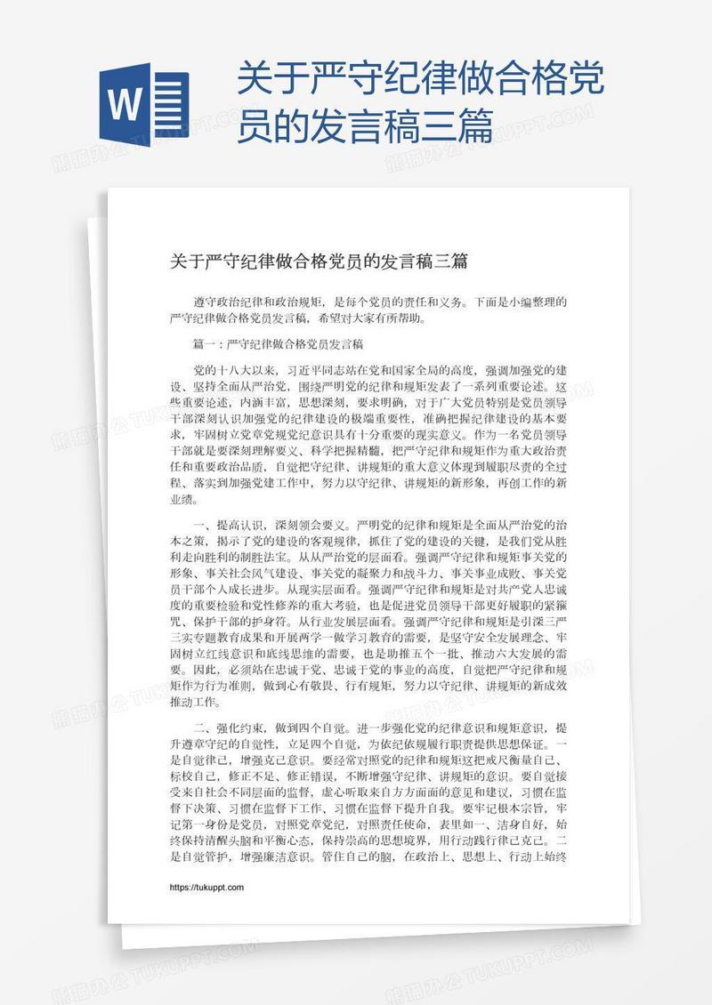本作品为关于严守纪律做合格党员的发言稿三篇, 编号:417pyd8e01, 格式为 docx, 大小1 MB, 本作品下载后,先解压,解压之后用推荐软件 Word(2010) 打开, 然后进行编辑功能。