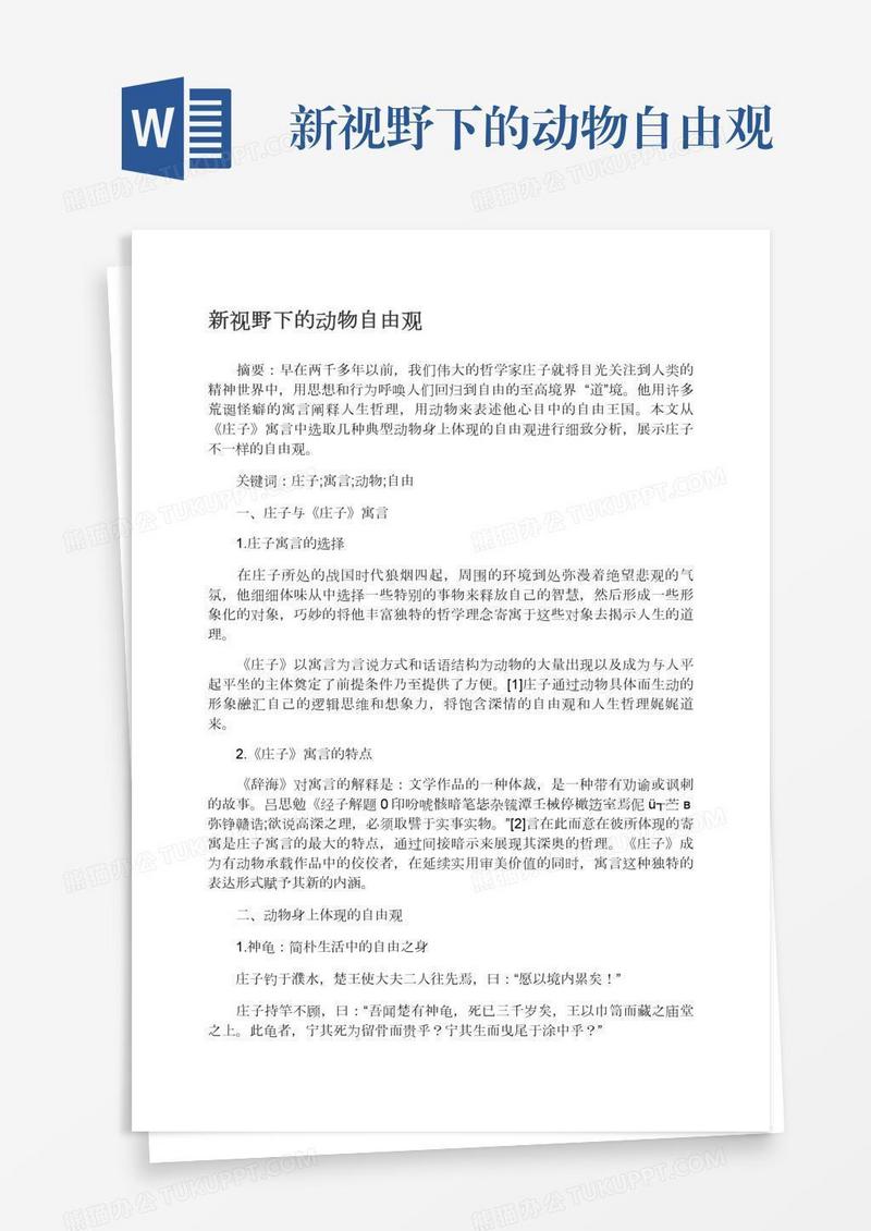 本作品为新视野下的动物自由观, 编号:417pyeqp31, 格式为 docx, 大小1 MB, 本作品下载后,先解压,解压之后用推荐软件 Word(2010) 打开, 然后进行编辑功能。
