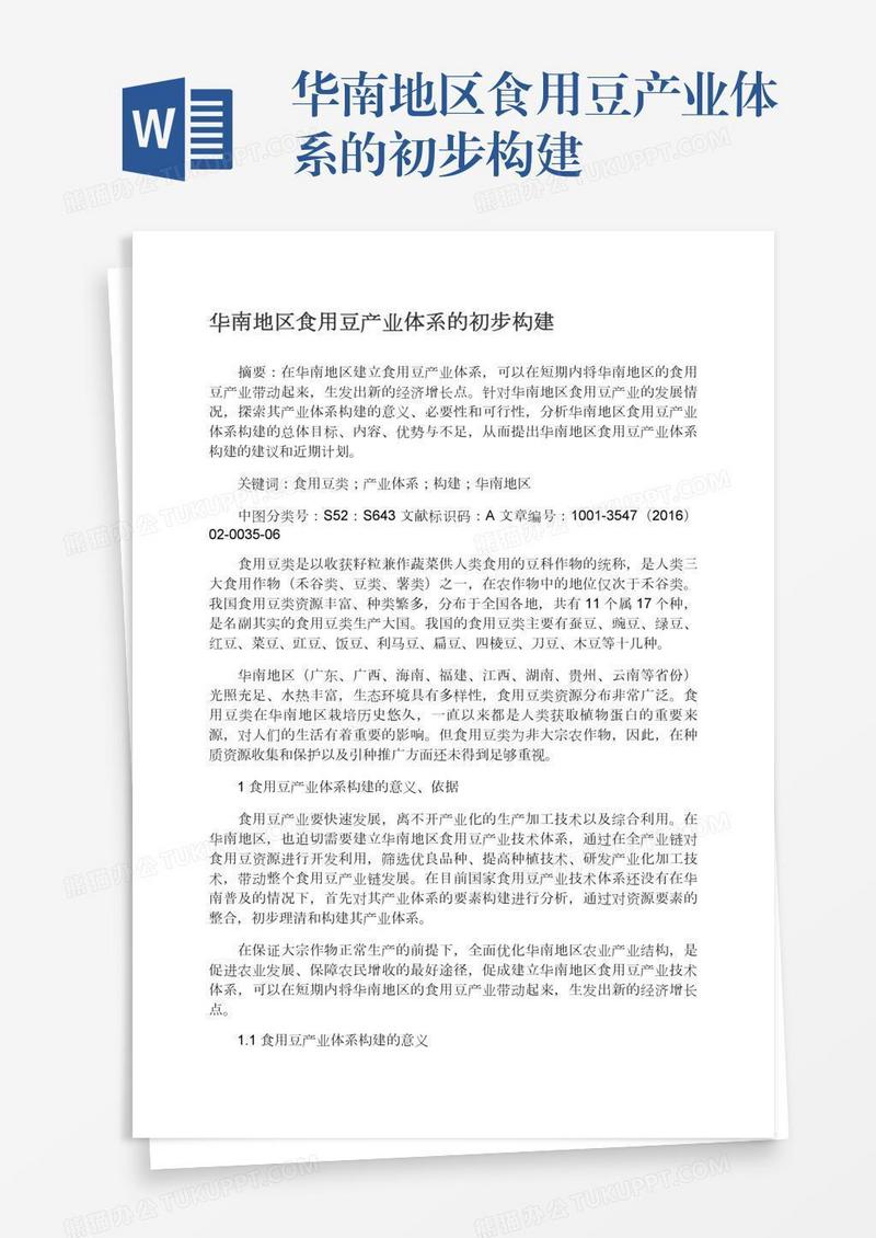 本作品为华南地区食用豆产业体系的初步构建, 编号:417pyn0l01, 格式为 docx, 大小1 MB, 本作品下载后,先解压,解压之后用推荐软件 Word(2010) 打开, 然后进行编辑功能。