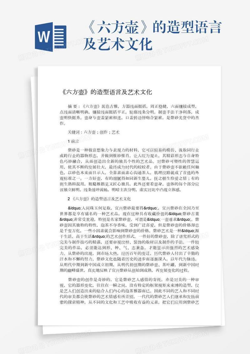 本作品为《六方壶》的造型语言及艺术文化, 编号:417pynn801, 格式为 docx, 大小1 MB, 本作品下载后,先解压,解压之后用推荐软件 Word(2010) 打开, 然后进行编辑功能。