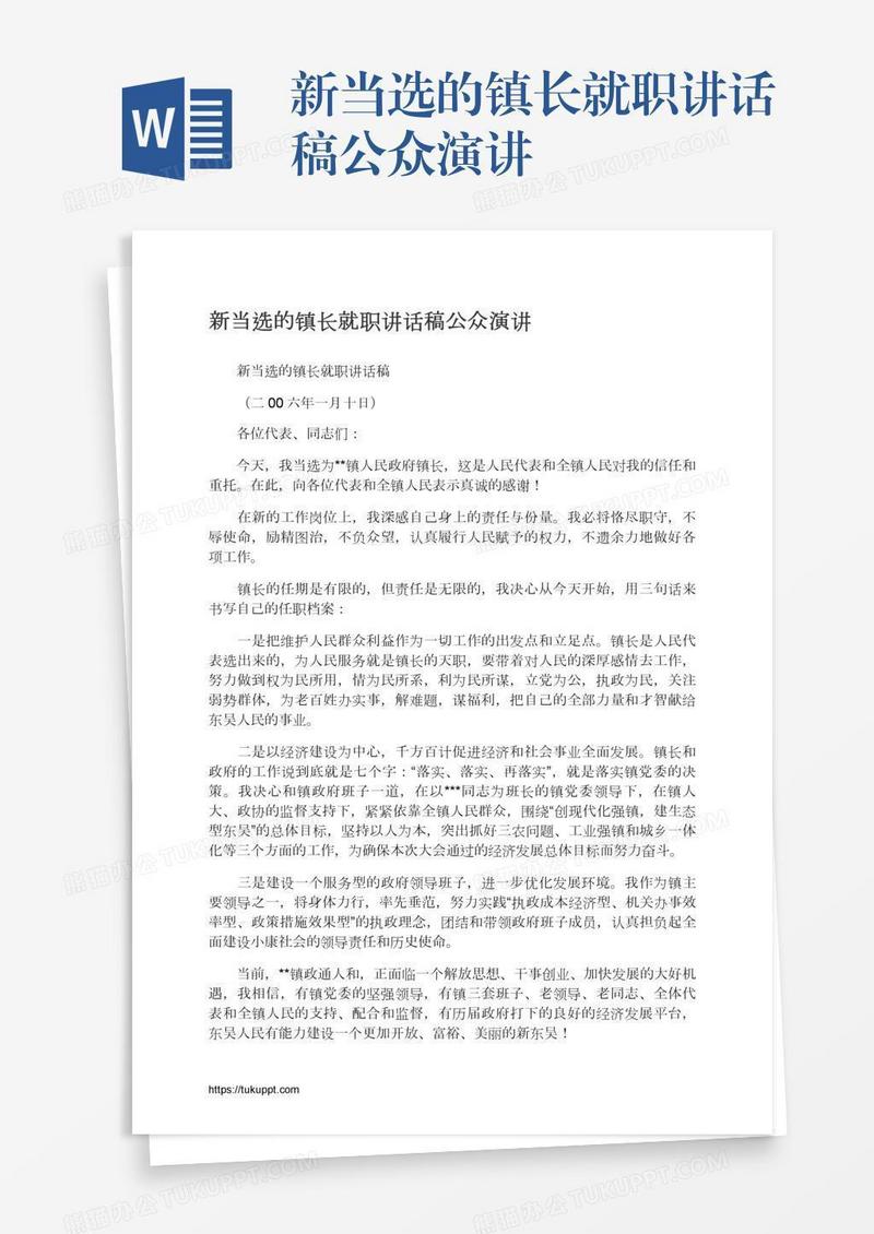 本作品为新当选的镇长就职讲话稿公众演讲, 编号:417pywgw61, 格式为 docx, 大小1 MB, 本作品下载后,先解压,解压之后用推荐软件 Word(2010) 打开, 然后进行编辑功能。
