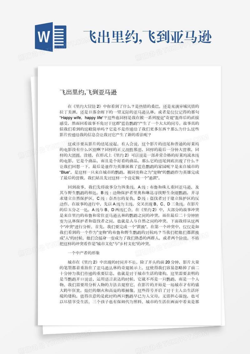 本作品为飞出里约,飞到亚马逊, 编号:510jg2dy7a, 格式为 docx, 大小1 MB, 本作品下载后,先解压,解压之后用推荐软件 Word(2010) 打开, 然后进行编辑功能。