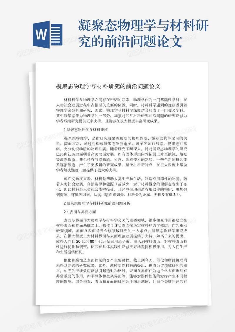 本作品为凝聚态物理学与材料研究的前沿问题论文, 编号:510jgvrpva, 格式为 docx, 大小1 MB, 本作品下载后,先解压,解压之后用推荐软件 Word(2010) 打开, 然后进行编辑功能。