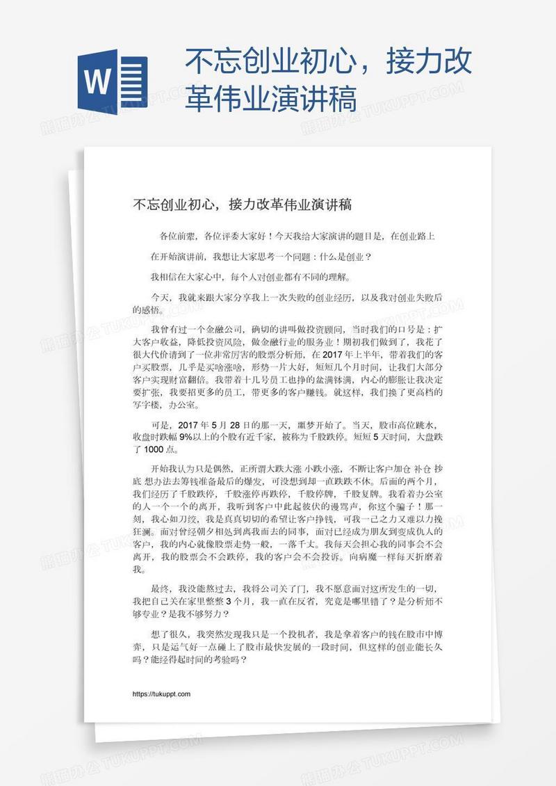 本作品为不忘创业初心,接力改革伟业演讲稿, 编号:510jgymqra, 格式为 docx, 大小1 MB, 本作品下载后,先解压,解压之后用推荐软件 Word(2010) 打开, 然后进行编辑功能。