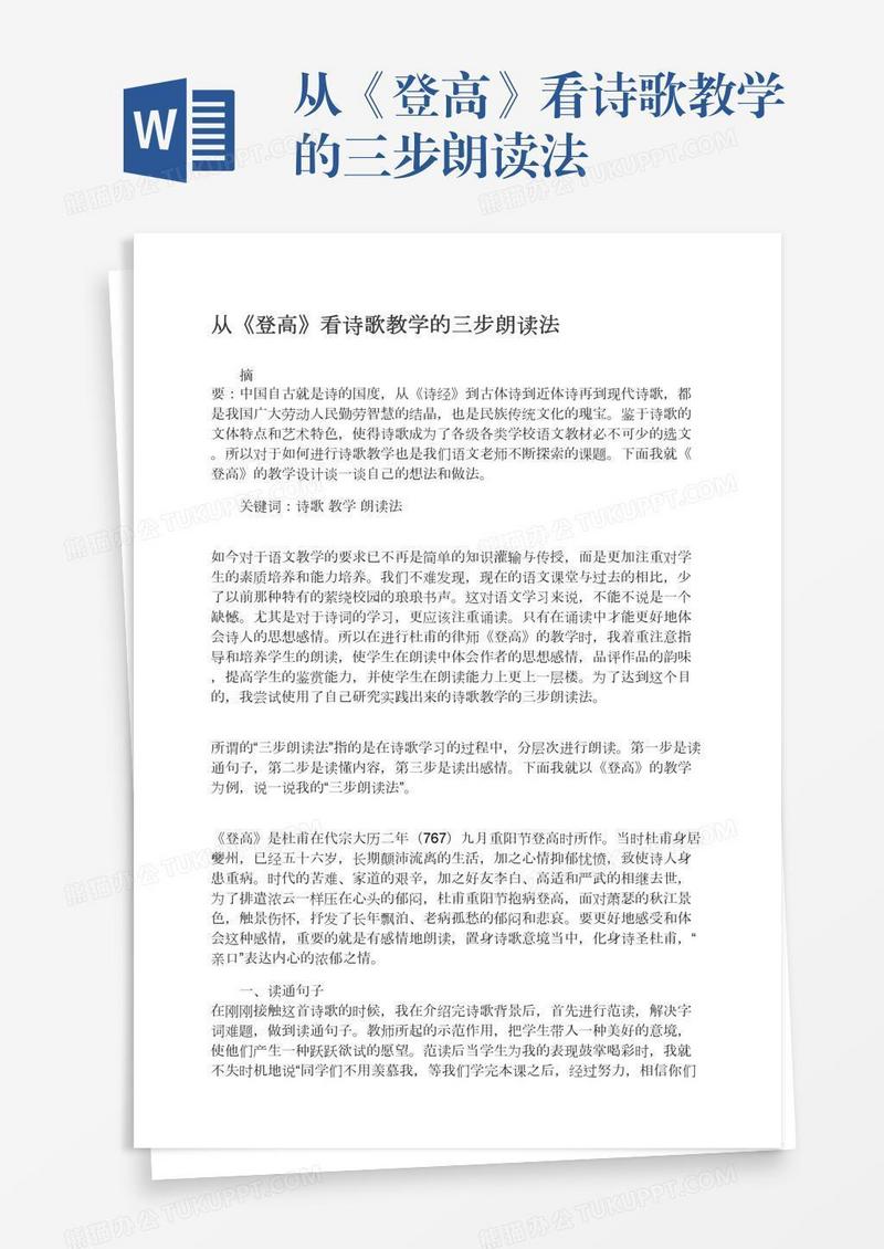 本作品为从《登高》看诗歌教学的三步朗读法, 编号:5a525peloa, 格式为 docx, 大小1 MB, 本作品下载后,先解压,解压之后用推荐软件 Word(2010) 打开, 然后进行编辑功能。