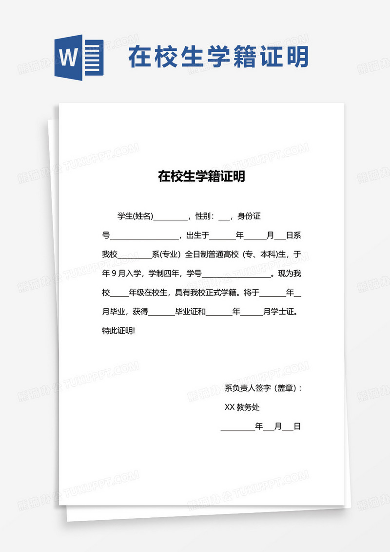 本作品为在校生学籍证明word模板, 编号:5a526qmr6a, 格式为 docx, 大小3 MB, 本作品下载后,先解压,解压之后用推荐软件 Word(2019) 打开, 然后进行编辑功能。