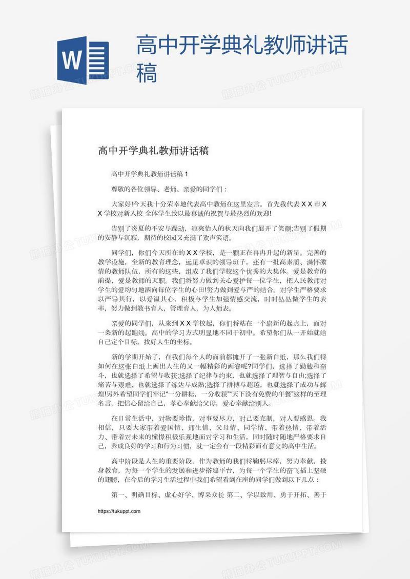 本作品为高中开学典礼教师讲话稿, 编号:5a52o8ogda, 格式为 docx, 大小1 MB, 本作品下载后,先解压,解压之后用推荐软件 Word(2010) 打开, 然后进行编辑功能。