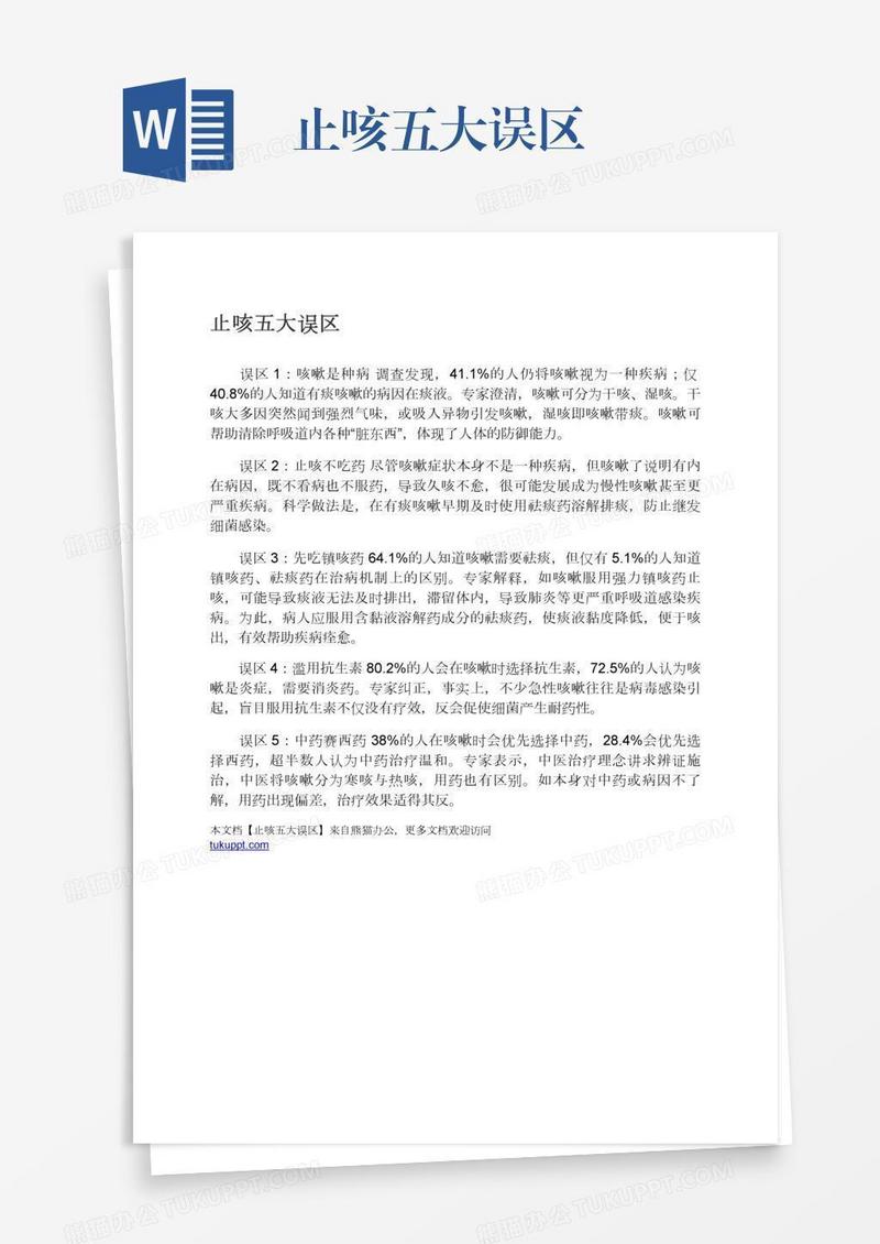 本作品为止咳五大误区, 编号:5a52ovl5ka, 格式为 docx, 大小1 MB, 本作品下载后,先解压,解压之后用推荐软件 Word(2010) 打开, 然后进行编辑功能。